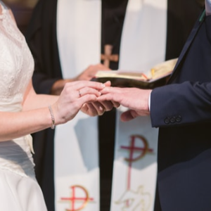 Przyjmij tę obrączkę jako znak mojej miłości i wierności, w imię Ojca i Syna i Ducha Świętego...